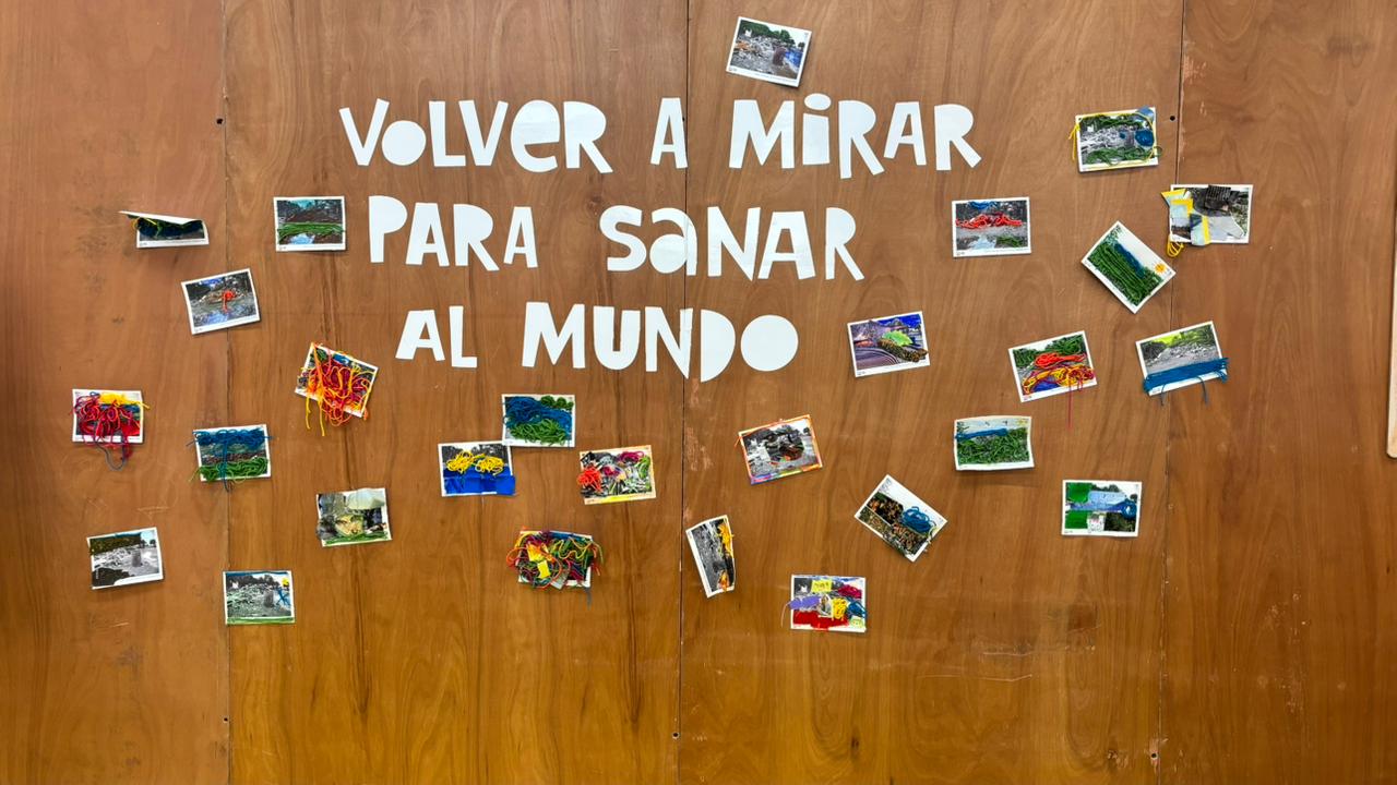 Las niñas y los niños lo observan. Algunos fruncen el ceño. Otros preguntan qué pasó. Y después lo intervienen: lo colorean, lo reparan, le regresan vida con lápices y plumones.
