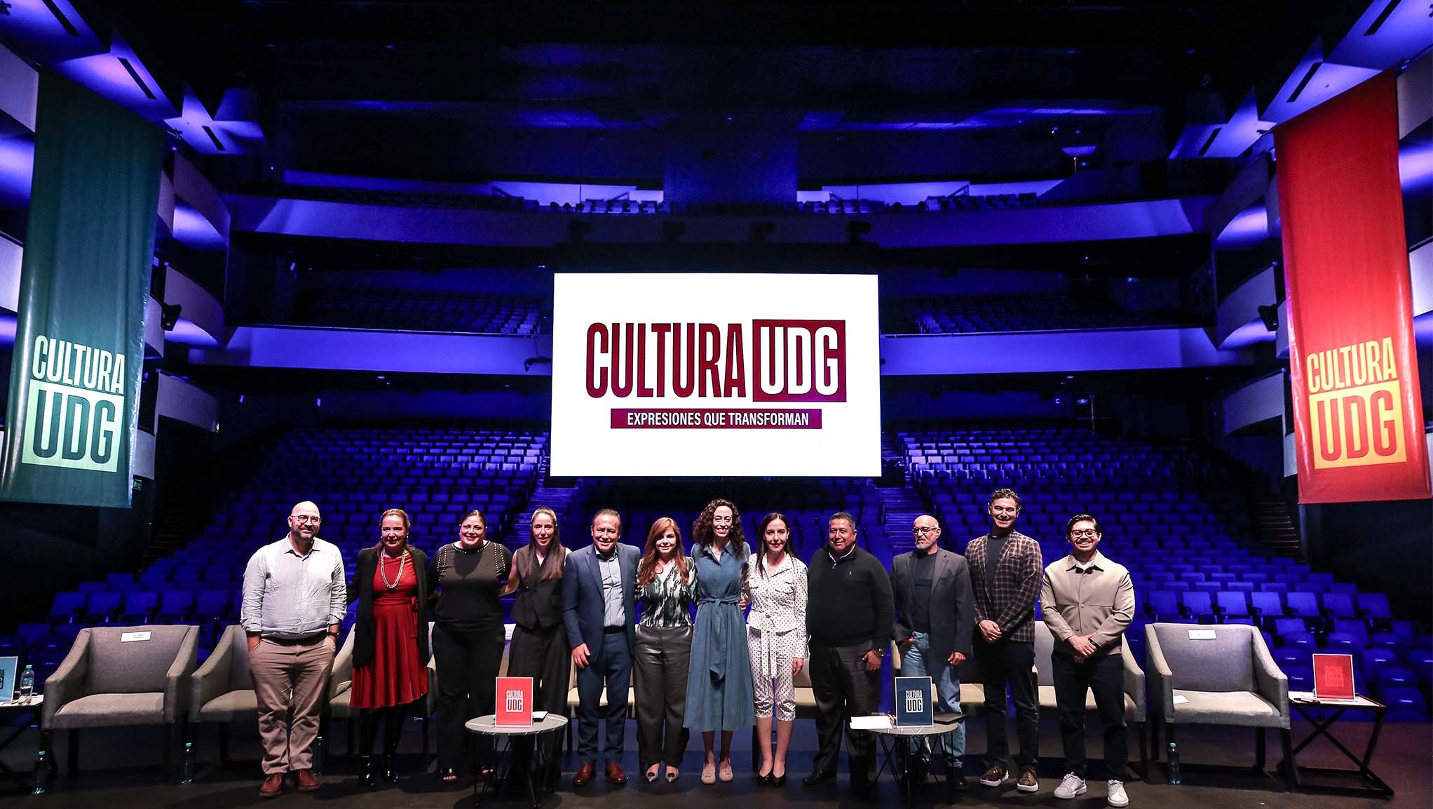 El escenario del Teatro Diana albergó la presentación de la nueva imagen y comunicación de Cultura UDG, bajo el concepto “Expresiones que transforman”. Con la evolución que busca reflejar con mayor claridad la amplitud, diversidad e impacto de su ecosistema cultural.