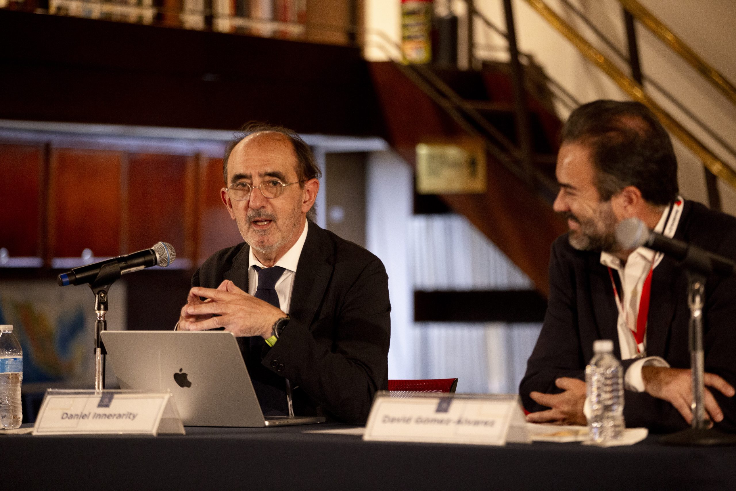En una charla presentada por David Gómez-Álvarez, académico del Departamento de Políticas Públicas de esta Casa de Estudio, Innerarity argumentó que la sociedad contemporánea tiende a caer en la trampa de buscar culpables con nombre y apellido para explicar las crisis que atraviesan el mundo o a como la desigualdad, la desinformación o el impacto de la inteligencia artificial.
