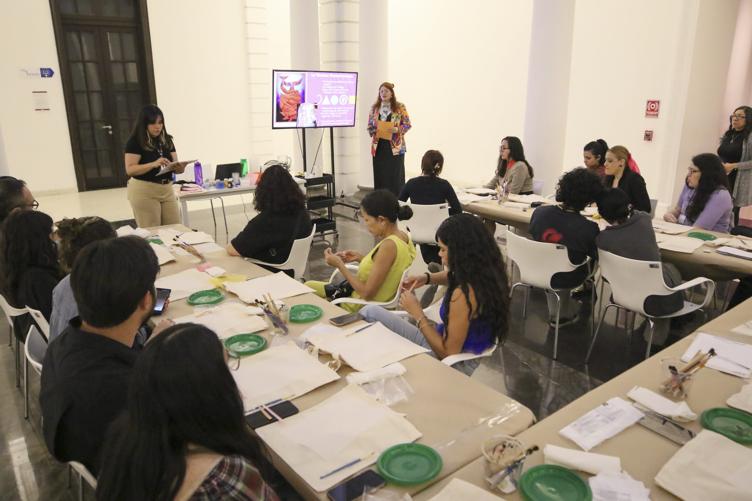 En el taller, realizado en el Museo de las Artes (MUSA) de la Universidad de Guadalajara, la creadora generó un diálogo entre el misticismo histórico y la abstracción moderna para que las y los participantes exploraran su identidad sin necesidad de conocimientos previos en las artes plásticas.