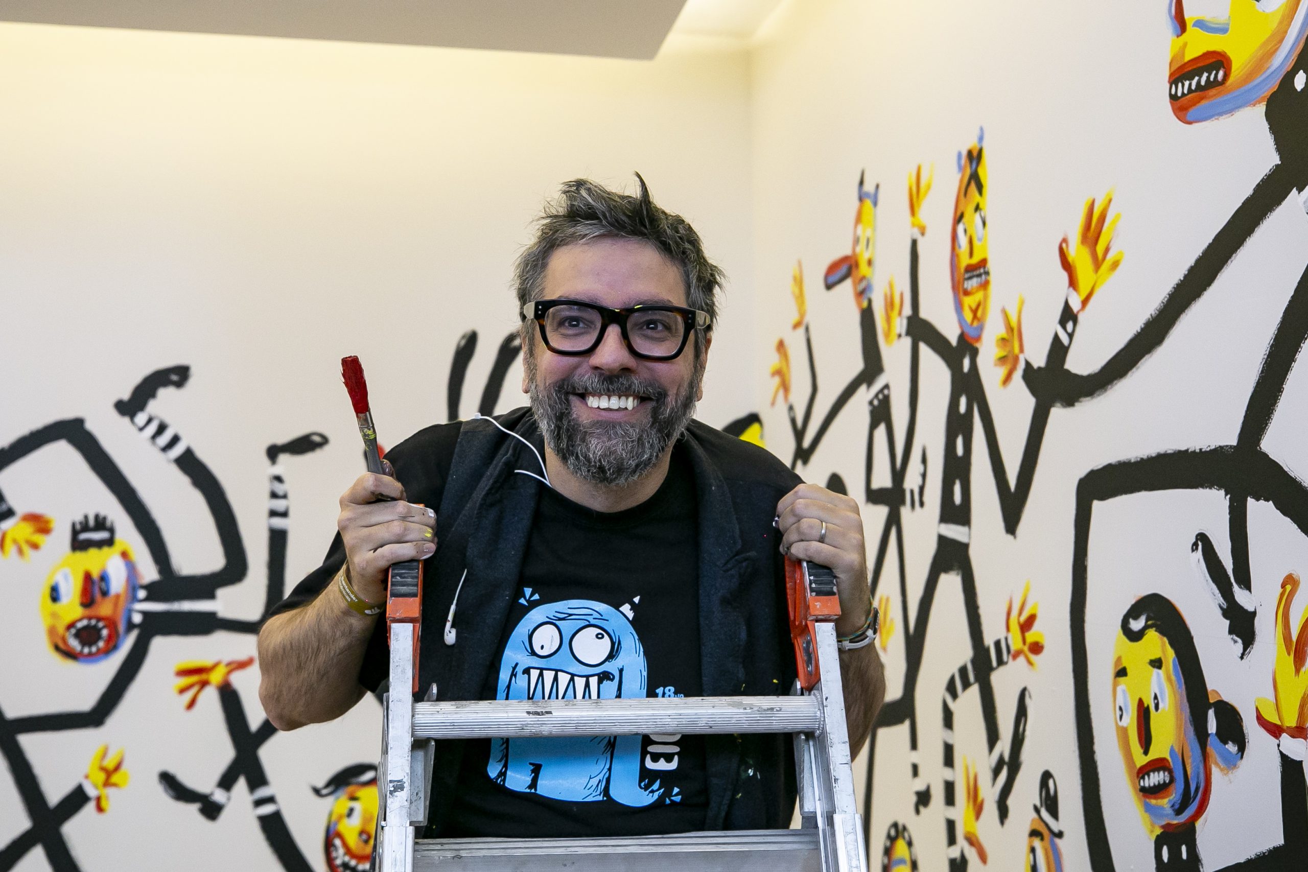 Fueron cuatro horas las que destinó para pintar, provisto de una paleta de colores integrada por el amarillo, negro, azul y rojo. Poco a poco, los personajes fueron tomando forma, mientras en sus audífonos escuchaba una playlist llamada “Classic alternative” (es decir: música para señor grande, para los milennials, dijo).