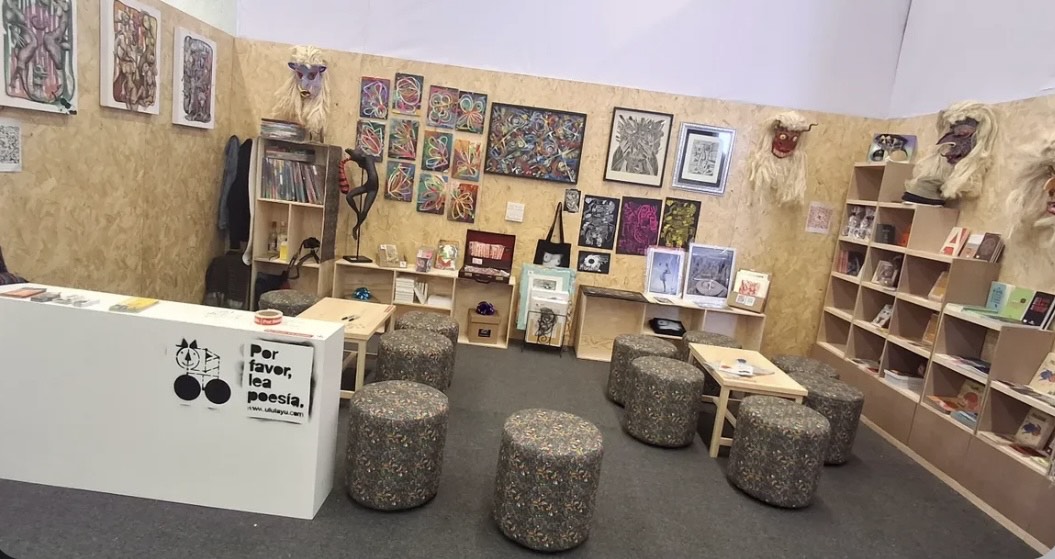 A esto se suma el stand de Proyecto Ululayo: arte, libros, máscaras y territorio en un solo golpe de vista. Aquí, la decoración no es un adorno, sino una presencia que impone y dialoga. Las máscaras parecen observar a quienes pasan; las piezas artesanales cuentan historias de comunidad, y los libros sirven como puente entre lo gráfico y lo ritual. Es un espacio que no solo se visita: se siente.
