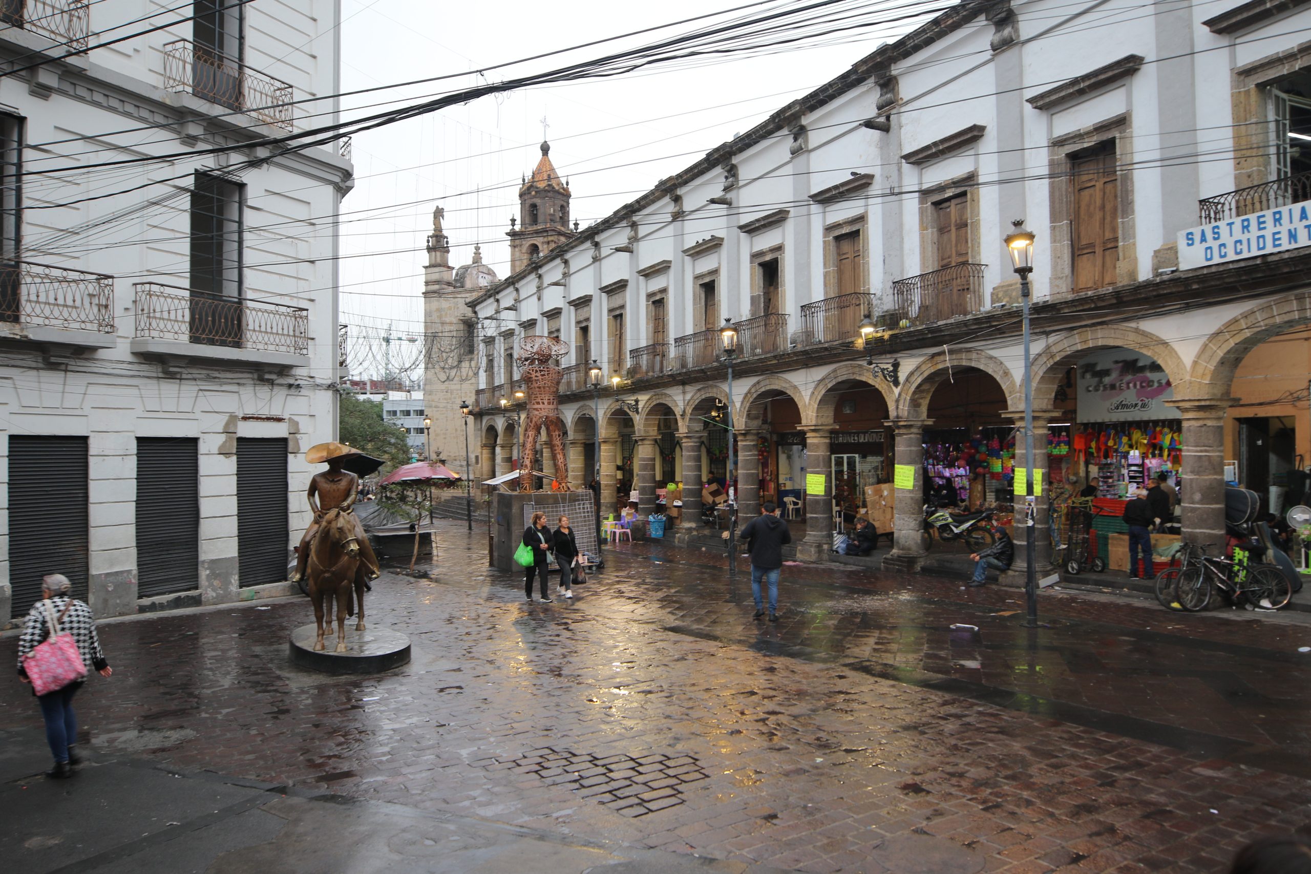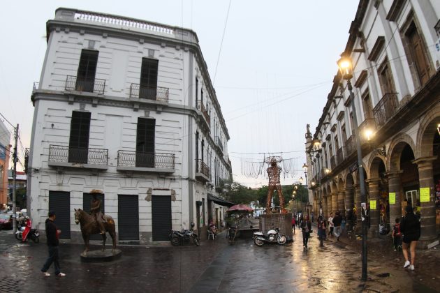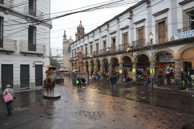 “Antes, toda la plaza tenía mesas y sombrillas, uno podía llegar y sentarse donde fuese; a tomar una cervecita, un refresquito y claro, a escuchar mariachi. Era otro ambiente. En los portales todo estaba lleno de restaurantes, el más importante de todos era el Panamericano. Pero eso ya fue hace mucho tiempo, ahora todas son tiendas de plásticos, debería de llamarse la ‘Plaza del plástico’”, bromea don Polo.