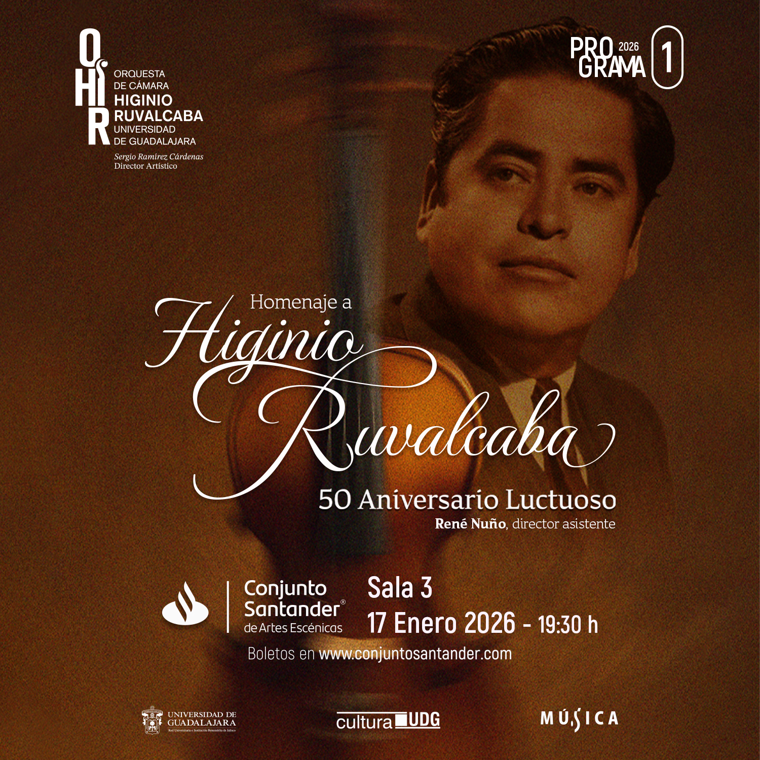 A 50 años del fallecimiento del músico jalisciense que da nombre a la Orquesta de Cámara Higinio Ruvalcaba (OHIR), la agrupación de la Universidad de Guadalajara (UdeG) le hará un homenaje en el concierto con el cual iniciará su temporada 2026.